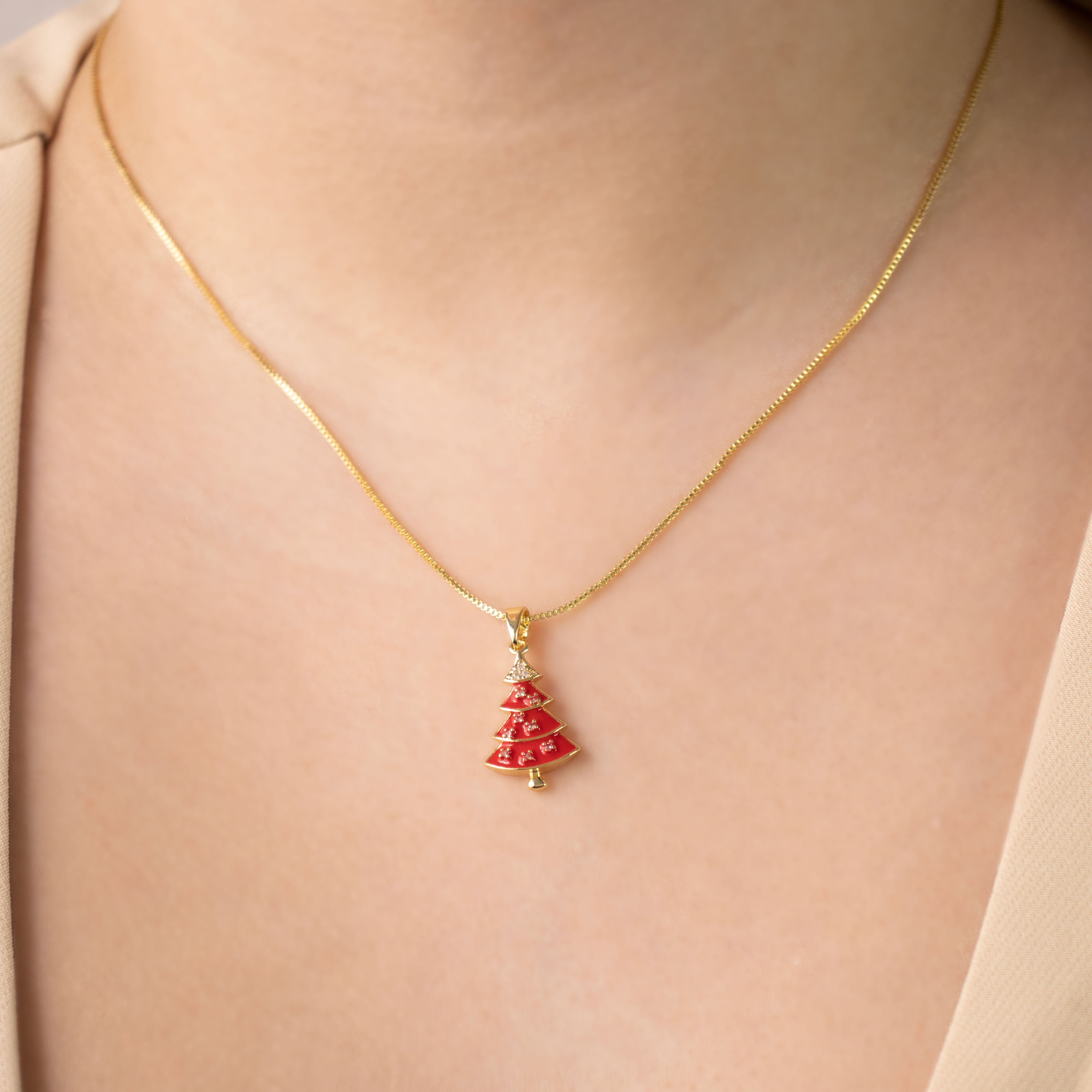 DIJE ARBOL DE NAVIDAD ROJO BAÑO EN RODIO